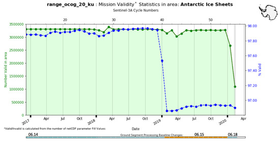 - ESA. Sentinel Online—Data Product Quality Reports. Available online: https://sentinel.esa.int/web/sentinel/technical-guides/sentinel-3-altimetry/data-quality-reports (accessed on 12 May 2020).