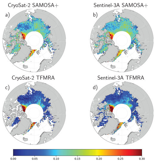 - Laforge, A.; Fleury, S.; Dinardo, S.; Garnier, F.; Remy, F.; Benveniste, J.; Bouffard, J.; Verley, J. Toward improved sea ice freeboard observation with SAR altimetry using the physical retracker SAMOSA+. Adv. Space Res. 2020. [Google Scholar] [CrossRef]