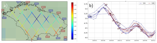 - Cancet, M.; Bijac, S.; Chimot, J.; Bonnefond, P.; Jeansou, E.; Laurain, O.; Lyard, F.; Bronner, E.; Féménias, P. Regional in situ validation of satellite altimeters: Calibration and cross-calibration results at the Corsican sites. Adv. Space Res. 2013, 51, 1400–1417. [Google Scholar] [CrossRef]