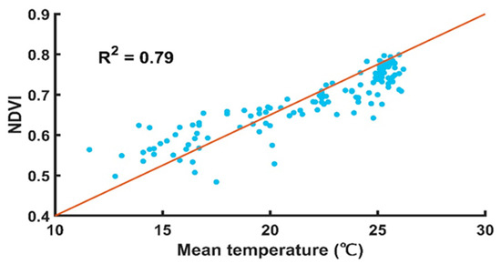 The climate was demonstrated to be closely related to the NDVI variability [48]. X. W. Chuai et al. showed that the temperature impact on NDVI was obviously more than precipitation [49]. Zhang et al. reported that the impact of temperature was significantly stronger than the impact of precipitation [50]. Therefore, in this study, we only used the effect of temperature on tea NDVI. Figure 10 shows that the increasing or decreasing trend of temperature can affect tea NDVI.
