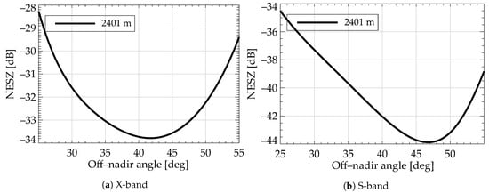 F-SAR Noise-Equivalent-Sigma-Zero (NESZ) of X-band (a) and S-band (b) for a height above ground of around 2400 m.