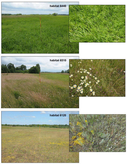 Protecting and monitoring natural habitats is essential for the mitigation of biodiversity decline, caused by the negative effects of increased human activity [1] and the natural adaptation to climate change. Back in 1992, the European Union established the Habitats Directive [2], a cornerstone European nature conservation policy, developing the wide Natura 2000 ecological network of protected areas with the aim of preserving the most valuable sites in the European landscape. Within the Natura 2000 habitats, grasslands are one of the most biodiverse habitats in Europe [3], delivering essential ecosystem services for our societies [4]. These habitats are important because of the preservation of natural values occurring in the agricultural landscape of lowland river floodplains, including fauna and flora species strictly connected with periodic floods and with extensively used agricultural habitats, as meadows and/or pastures [5,6]. River valleys, with a properly developed structure of natural habitats, perform important ecological functions as ecological corridors, including for migratory species [7,8,9]. The diverse, mosaic structure of the natural habitats of river valleys is conducive to both maintaining and restoring biodiversity and strengthening ecosystem services [10,11,12]. Thus, it is crucial to maintain this original, natural structure in good condition.