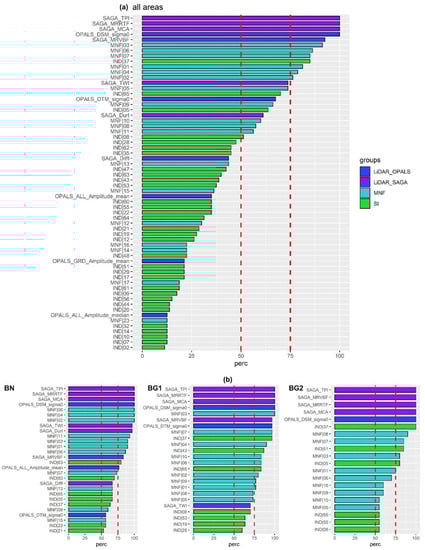 The results show that there are features being selected 100% of times for all study areas (Figure 10a) by the RFE-RF, in particular: