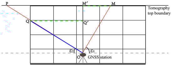Additionally, in most tomography models, to obtain as many effective signals as possible, the influence of the elevation angle is neglected. However, signals which enter the neutral atmosphere at low elevation angles () are significantly affected by atmospheric bending, according to Möller and Landskron []. As the bending effect is not modeled by the tomographic algorithms, rays with an elevation angle below 15° are first eliminated.