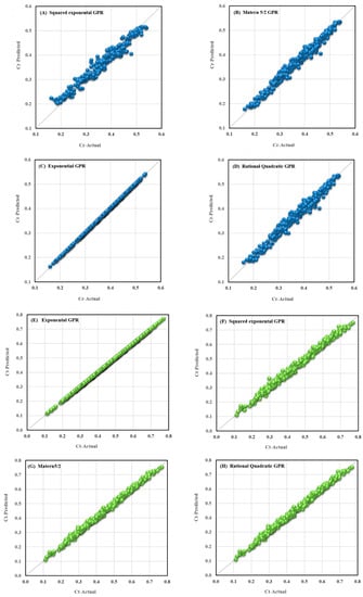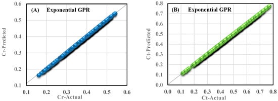 Measured versus predicted (A) Cr using exponential GPR (B) Ct using exponential GPR.