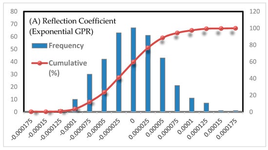 Therefore, according to the introduced objective function and the numbers obtained in Table 3 and Table 4, the exponential Gaussian process model is generally the best model to predict the reflection and transmission coefficients. The prediction results of the top four models of each output are also visualized in Figure 5.