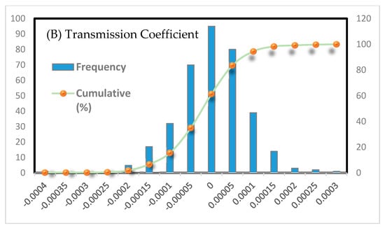 The error distribution of predicted and actual values for (A) Reflection Coefficient parameter (B) Transmission Coefficient parameter.