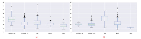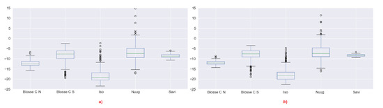 Boxcar filters produce optimum results when a homogenous surface is involved. For our multi-scale analysis, we used it with a 5 × 5 and an 11 × 11 averaging window.