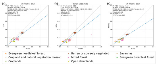 - Román, M.O.; Schaaf, C.B.; Woodcock, C.E.; Strahler, A.H.; Yang, X.; Braswell, R.H.; Curtis, P.S.; Davis, K.J.; Dragoni, D.; Goulden, M.L.; et al. The MODIS (Collection V005) BRDF/albedo product: Assessment of spatial representativeness over forested landscapes. Remote Sens. Environ. 2009, 113, 2476–2498. [Google Scholar] [CrossRef]