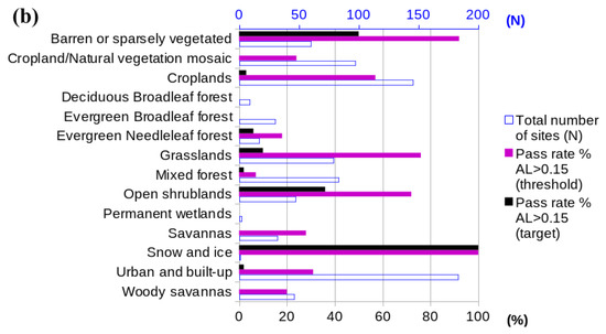 | % Pass rate (in Phase 2) | Percentage of sites matching the predefined levels of accuracy: optimal, target or threshold (Table 5) per land cover type. |