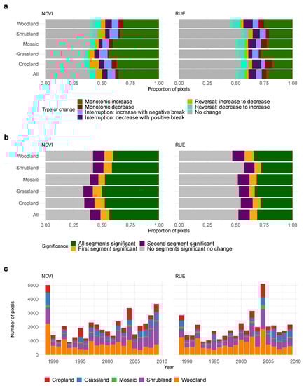 Higginbottom, T.P.; Symeonakis, E. Identifying Ecosystem Function Shifts in Africa Using Breakpoint Analysis of Long-Term NDVI and RUE Data. Remote Sens. 2020, 12, 1894. https://doi.org/10.3390/rs12111894
