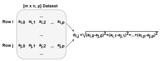 Given a sample of p-dimensional points, , in order to form a univariate linear projection of X, we define a as a p-dimensional normalized vector determined by the two p-dimensional points separated by the maximum Euclidean distance: