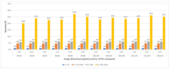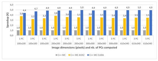 In [35], a modified version of the fast PCA algorithm implemented on the GPU architecture was presented along with the suitability of the algorithm for face recognition tasks. The results showed approximately 20× faster results comparing with two other implementations of the fast PCA algorithm (the CPU implementation and the CPU sequential version). In a similar way, in [36] a fast non-iterative PCA computation for spectral image analysis by utilizing a GPU is proposed.