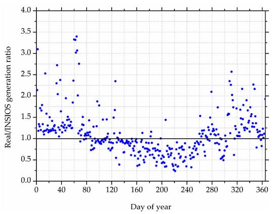 Variation of the ratio between RPV and INSIOS energy generation over a year.