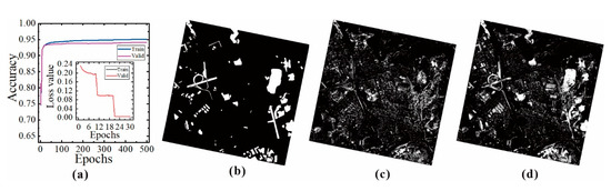 MST categorized 110,723 changed samples and 324,675 unchanged samples at Site1 and 231,972 changed samples and 1,167,469 unchanged samples at Site2. The training results of DBN and the detection results of the change range are shown in Figure 10.