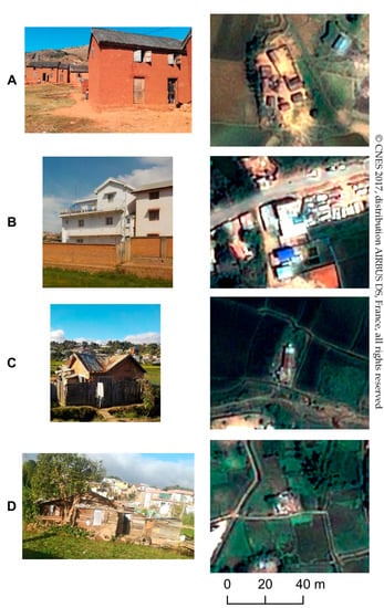17], are very small in size, and may be made of natural materials (thatched roof, mud bricks), making it difficult to differentiate them from non-urban uses (bare soils, agricultural residues, and so on).