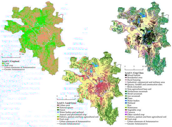 Figure 5 presents the land use maps of Greater Antananarivo obtained at levels 1 to 3.