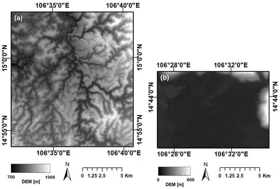 DEM images at (a) Xe-Namnoy reservoir, (b) Hinlat area.