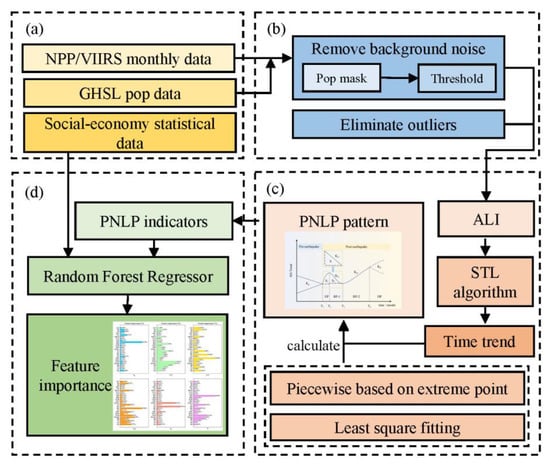 This paper includes the following steps: (1) data collection and (2) pre-processing; (3) construction and calculation of the PNLP pattern; (4) the analysis of feature importance of PNLP indicators based on random forest regressor (RFR). Figure 2 shows a detailed process of the method.