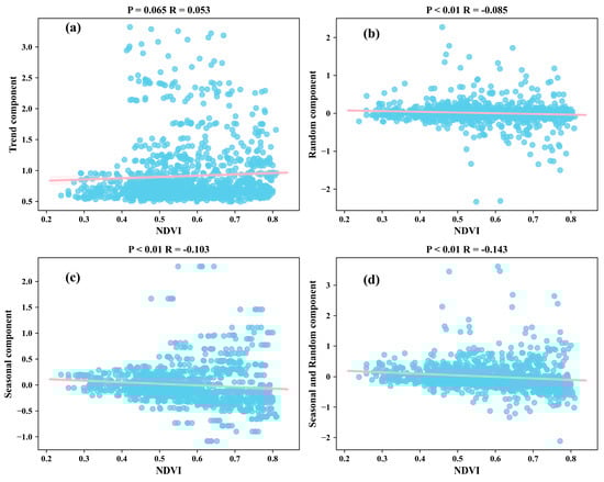 STL algorithm is widely used in remote sensing, especially in monitoring NDVI changes [53,54]. In NTL, Liu et al. [55] successfully monitored two religious events in Saudi Arabia and Iraq based on the STL algorithm. STL algorithm divides the original time series data into seasonal component, trend component, and remainder component [38], as shown in Formula (3):