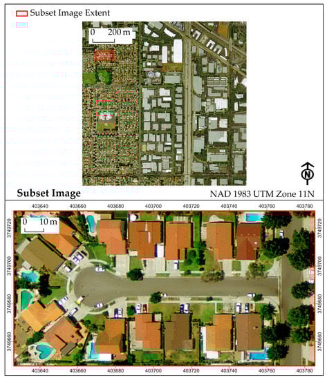 - USGS. High Resolution Orthoimagery, Los Angeles County, California, USA, Entity ID: 3527226_11SMT035485. Available online: https://earthexplorer.usgs.gov/ (accessed on 17 April 2020).