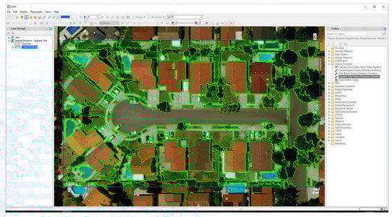 In their review of over 200 case studies that used GEOBIA for land-cover classification, Ma et al. [4] found that 81% of the studies used Trimble eCognition software (eCognition) [43], while 4% used L3Harris Geospatial ENVI Feature Extraction (ENVI FX) [44]. In the following sections, we will discuss three GEOBIA software options and their associated segmentation and merging approaches: (3.4.1) GRASS GIS; (3.4.2) eCognition; and (3.4.3) ENVI FX. GRASS GIS provides the user with a free and open-source option for performing GEOBIA, while eCognition and ENVI FX are the two most popular commercial options.