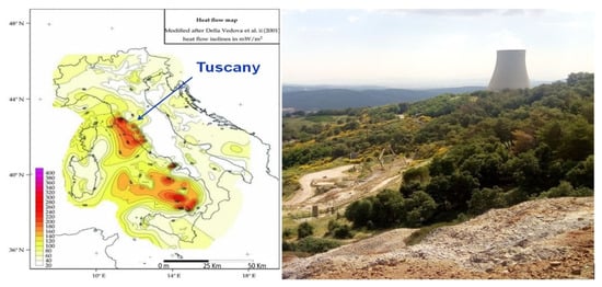 - Della, V.B.; Bellani, S.; Pellis, G.; Squarci, P. Deep temperatures and surface heat flow distribution. In Anatomy of an Orogen: The Apennines and Adjacent Mediterranean Basins; Springer: Dordrecht, The Netherlands, 2001; pp. 65–76. [Google Scholar]