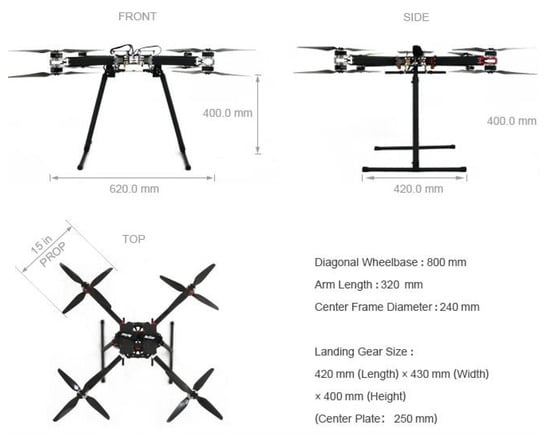 A FlyBit octocopter [], showed in Figure 4, was used to carry out unmanned surveys from UAVs.