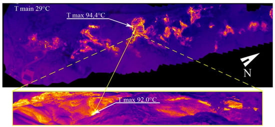 Generally speaking, sites of high-temperature geothermal energy resources are commonly marked by an area presenting thermal manifestation where fumaroles, steaming grounds, hydrothermally altered grounds, hot springs, volcanic gas vents, craters and mud pools occur. These areas must be subjected to constant geophysical monitoring and, at the same time, it is important to monitor thermal anomalies, through measurements of surface temperatures []. Deviations in thermal flux (especially when correlated with gas emissions and surface deformation) could indicate the presence of geothermal fields. Surface thermal signatures can also be used to define how the development of surface structures present both on volcanic districts and on geothermal areas evolve, possibly related to tectonic activity along active faults.