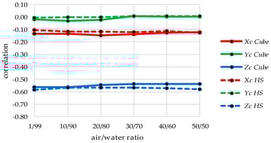 The analysis of stereo camera calibration is conducted for the Cube and HS dataset variations. Two groups of simulated datasets are established. As presented in Section 3, the first group consists of datasets where the angle of convergence is varied. The second group consists of datasets, with translated interfaces, thus leading to varying air/water ratios.