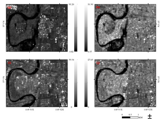 All GRD products were processed into Gamma bands and S_Gamma bands, which are shown in Figure 3. Sentinel-2 images on 10 August 2018 were downloaded as the optical image (Figure 1). Both Sentinel-1 and Sentinel-2 products were processed into 10-meter resolutions.