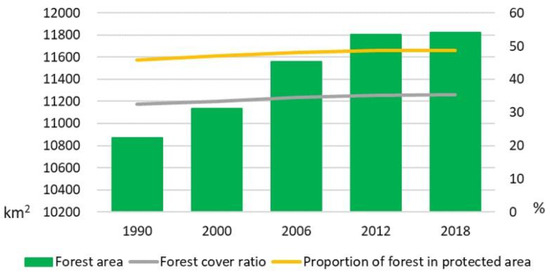Researchers’ interest towards attaining the 17 SDGs, agreed in September 2015, and set up in the 2023 Agenda for Sustainable Development is still a hot topic in many scientific fields. The indicators for SDGs achievements are grouped into three tiers, according to methodological clarity and data accessibility. Indicator 11.3.1 has been classified as tier II, although, as noted by Nicolau et al. [58] it is not conceptually clear, as the agreed and precise definition of urban land is still missing. The elaborated land consumption rate (LconR) is based on a remotely sensed urban area and its relative growth, and as such, it may be considered as an input component to 11.3.1 indicator calculation. Indicators 15.1.1 and 15.2.1 belong to tier I (conceptually clear, methodology and standards are available, and data are regularly produced by most of the countries). However, Liu et al. [59] found that the 15.2.1 progress towards sustainable forest management required further deconstruction and analysis of its definition. Moreover, they introduced five sub-indicators, among them a sub-indicator “proportion of forest area located within the legally established area”, which was used in the presented study.