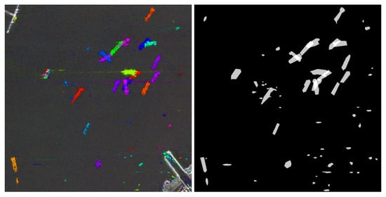 Rapid and EAsy Change detection on Time-series using the coefficient of Variation (REACTIV) method applied to an area of the Grizzly Bay, San Francisco (Left) and corresponding manual data entry for Ground Truth (Right), 600 × 600 pixels.