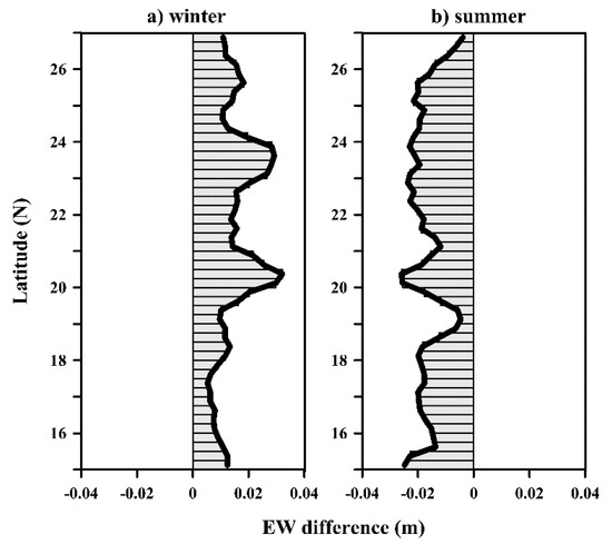 The mean EW difference during (a) winter and (b) summer.