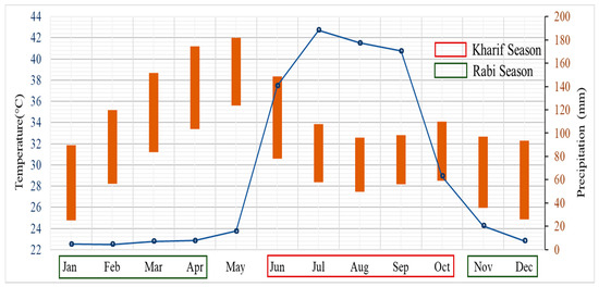 49]. Depending on these monsoon rains, rainfed agriculture has become the dominant agricultural system in this region. Therefore, a failure of the southwest monsoon rains directly or indirectly leads to devastating drought scenarios and agrigrain crises in Marathwada. In this area, the highest temperature (45 °C) occurs in May, and the coldest temperature (11 °C) is observed in December (
