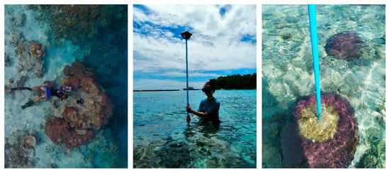 Because of the increase in the frequency of extreme heating events driven by climate change, the future of the coral reefs in the Anthropocene is unknown. Estimation of coral recovery after a bleaching event is definitely challenging []. In the Maldives, a full recovery from the 2016 mortality could take decades [,,] and might be adversely affected by the increase in coral reef exploitation from fishery activities, tourism and land reclamation [,,]. In this scenario, affordable monitoring techniques and reproducible protocols are essential to improve high-resolution data collection.
