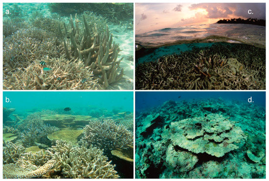 Coral reefs are declining worldwide as a result of the effects of multiple natural and anthropogenic stressors, such as increased water temperature, ocean acidification, overfishing and land reclamation [,,]. Among these factors, temperature-induced bleaching events have been reported to cause significant coral mortality in the Indo-Pacific Ocean, with two main destructive events in 1998 and 2016 [,,,,].