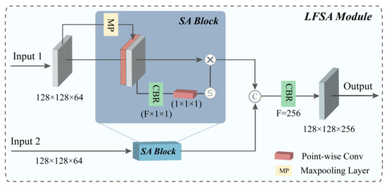Illustration of the low-level feature spatial attention (LFSA) module. SA = spatial attention.