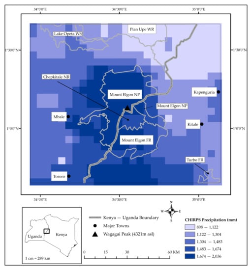 - Myhren, S.M. Rural Livelihood and Forest Management in Mount Elgon, Kenya; Norwegian University of Life Sciences: Ås, Norway, 2007. [Google Scholar]