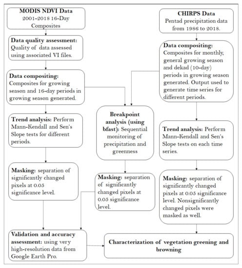 3.1.1. MODIS NDVI and CHIRPS Precipitation