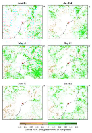 - Didan, K. MOD13Q1 MODIS/Terra Vegetation Indices 16-Day L3 Global 250m SIN Grid V006; NASA EOSDIS Land Processes DAAC: Sioux Falls, SD, USA, 2015. [Google Scholar]