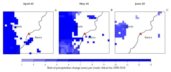 - Kotikot, S.M.; Flores, A.; Griffin, R.E.; Sedah, A.; Nyaga, J.; Mugo, R.; Limaye, A.; Irwin, D.E. Mapping threats to agriculture in East Africa: Performance of MODIS derived LST for frost identification in Kenya’s tea plantations. Int. J. Appl. Earth Obs. Geoinf. 2018, 72, 131–139. [Google Scholar] [CrossRef]
