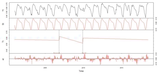 - Verbesselt, J.; Hyndman, R.; Newnham, G.; Culvenor, D. Detecting trend and seasonal changes in satellite image time series. Remote Sens. Environ. 2010, 114, 106–115. [Google Scholar] [CrossRef]