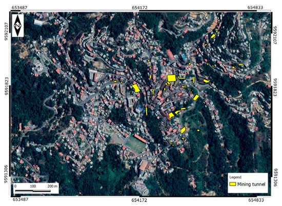 Mining tunnels in the Zaruma urban area (modified from [30]).