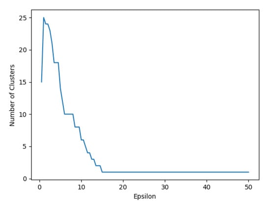 Figure 4 shows the number of clusters generated using DBSCAN as a function of . This figure highlights the non linear behavior of clustering deficiencies with DBSCAN and suggests that can be adjusted by means of an optimization subroutine.The optimal value of would correspond to the maximum number of clusters, ensuring optimal coverage of deficiencies.
