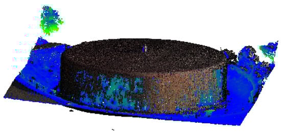 As mentioned in Section 2.6, the iterative modelling approach receives validation through a field study of a decommissioned municipal water tank. The initial iteration consists of 3 photos taken manually at a height of and camera orientations determined by an experienced user. The initial set of photos provide the model observed in Figure 14.