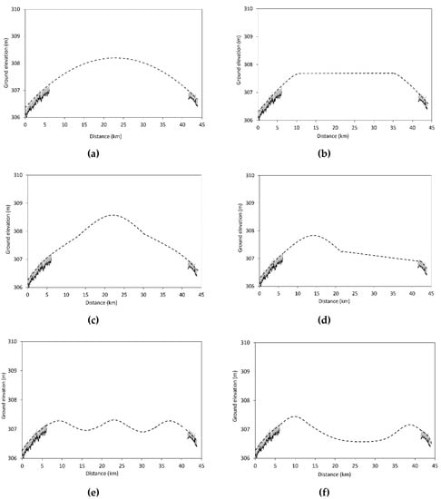 The Tandem-X 90 digital elevation model [] is a 90 m DSM derived from the TanDEM-X X-band synthetic aperture radar (SAR) instrument via interferometry. The elevations corresponding to the path illustrated in Figure 2 were extracted from this dataset.