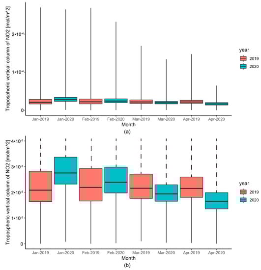 - Zheng, Z.; Yang, Z.; Wu, Z.; Marinello, F. Spatial Variation of NO2 and Its Impact Factors in China: An Application of Sentinel-5P Products. Remote Sens. 2019, 11, 1939. [Google Scholar] [CrossRef]