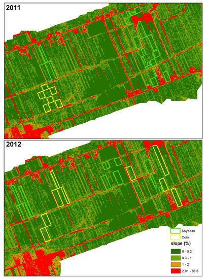 Slope where experimental fields were located during 2011 and 2012.