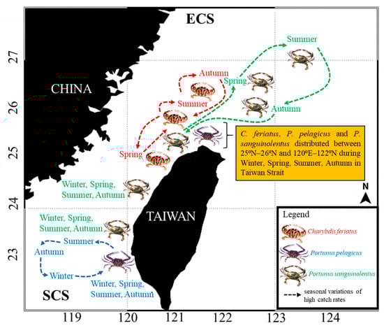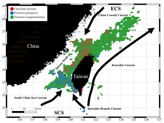 Naimullah, M.; Lan, K.-W.; Liao, C.-H.; Hsiao, P.-Y.; Liang, Y.-R.; Chiu, T.-C. Association of Environmental Factors in the Taiwan Strait with Distributions and Habitat Characteristics of Three Swimming Crabs. Remote Sens. 2020, 12, 2231. https://doi.org/10.3390/rs12142231